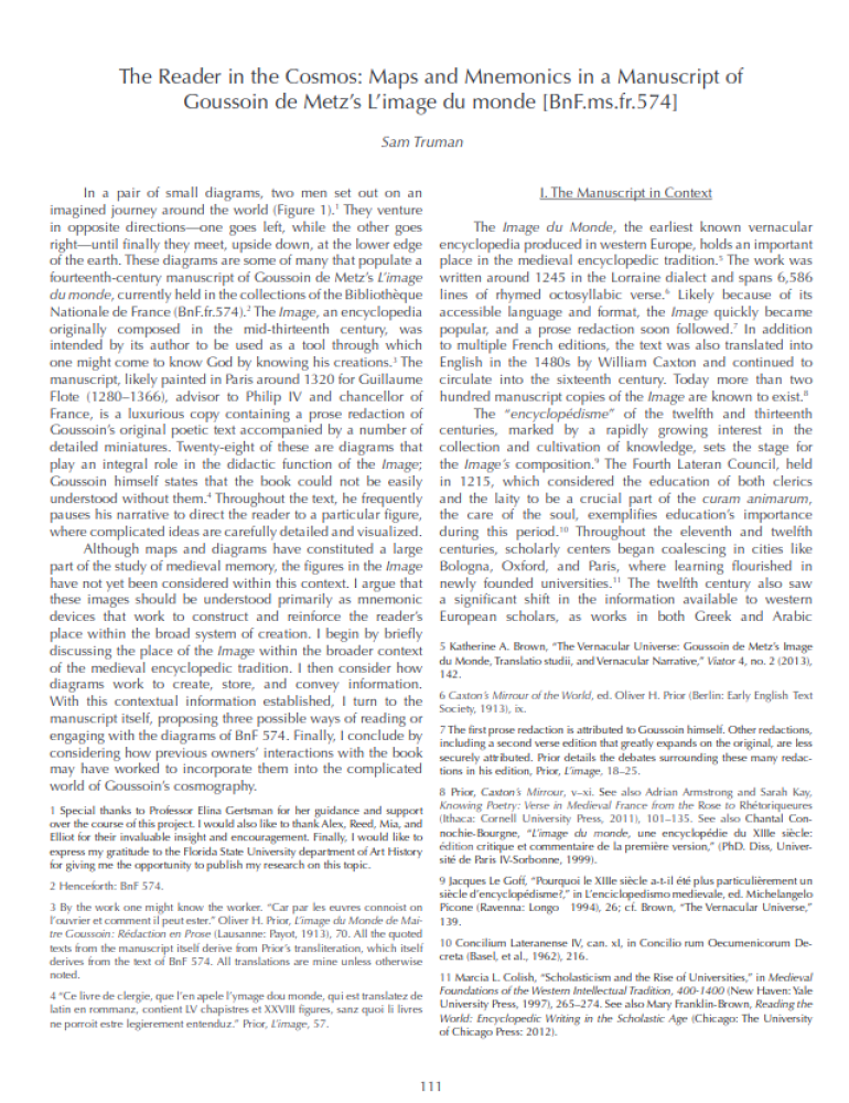 "The Reader in the Cosmos: Maps and Mnemonics in a Manuscript of Goussoin de Metz’s L’image du monde [BnF.ms.fr.574]"